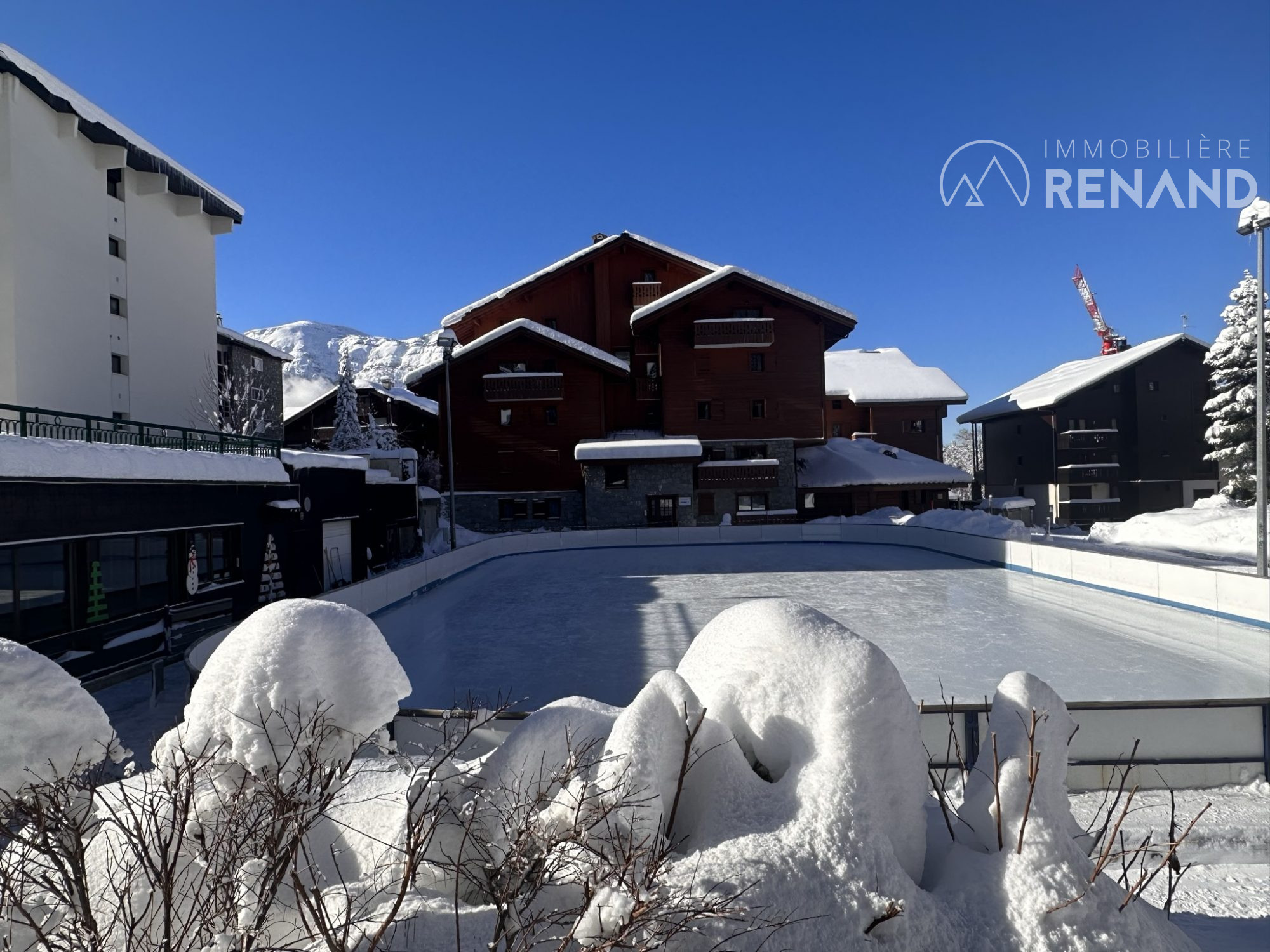 Idéalement situé en plein cœur du village, au pied de la patinoire et à deux pas de toutes les commodités, cet appartement bénéficie d’un emplacement recherché au sein de la prestigieuse résidence Les Fermes du Soleil, avec piscine intérieure, spa et espaces bien-être.
